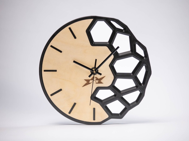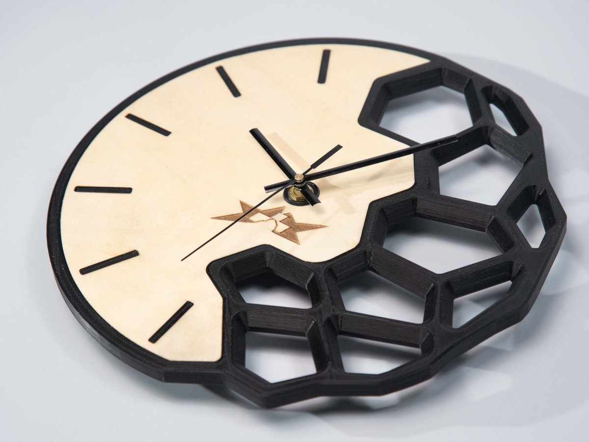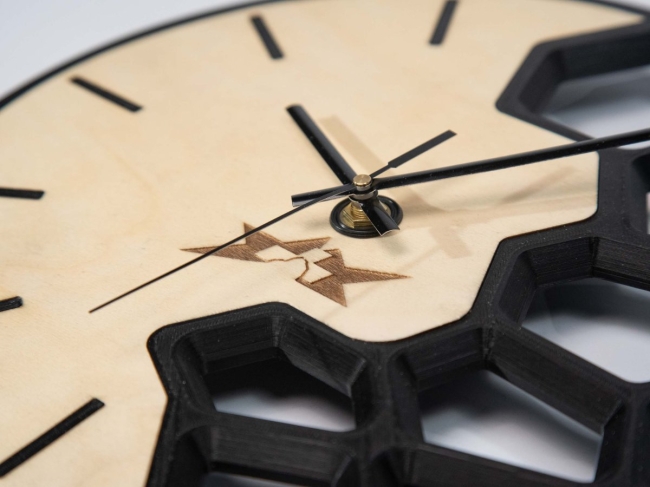 Horloge design réalisée en impression 3d avec une partie bois personalisable