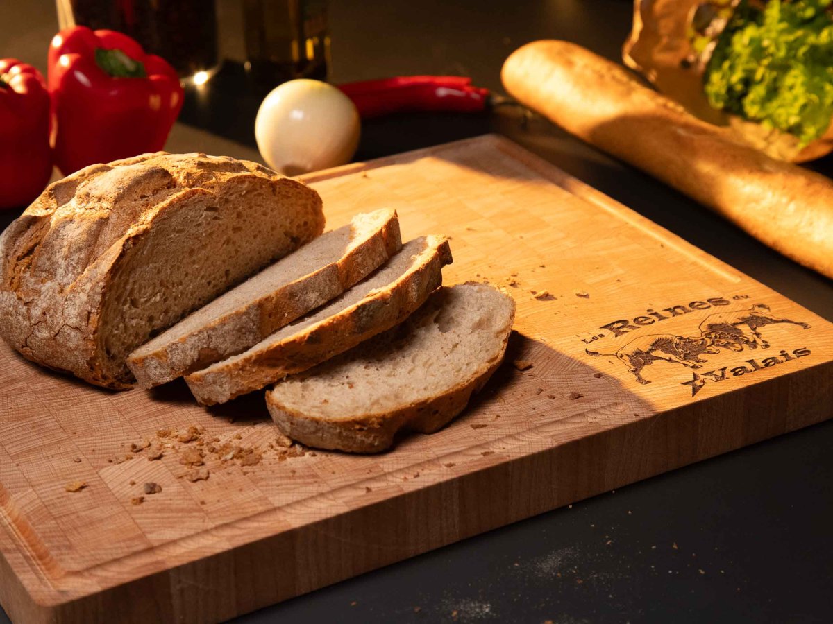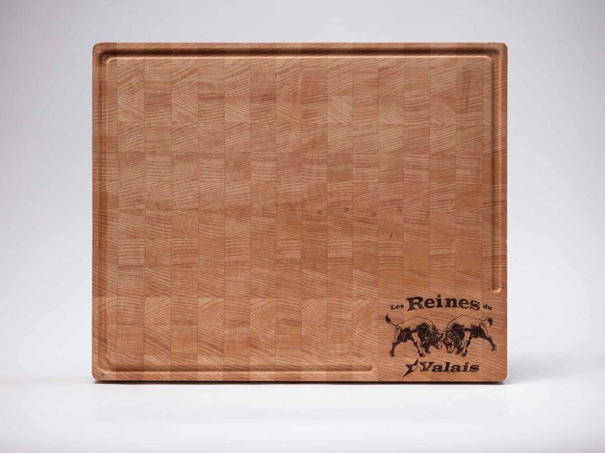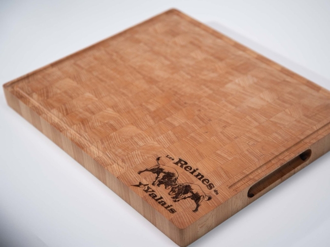 Planche à découper réalisée en bois de bout avec gravage au laser