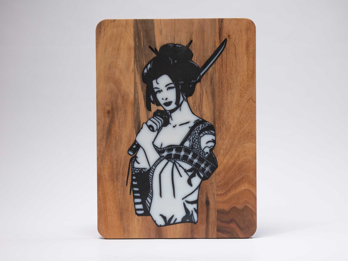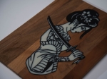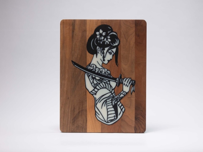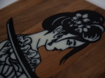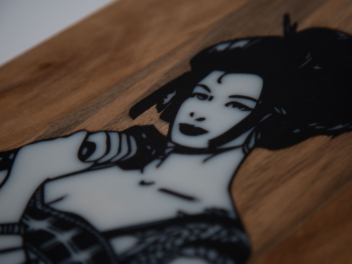 Planchette à découper en noyer avec incrustation résine dessin "Geisha"
